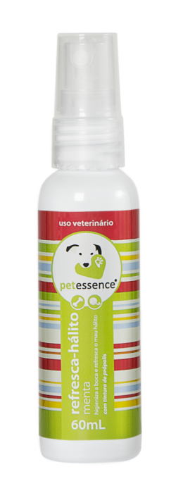 cães ou gatos, diminuindo o mau hálito. Com tintura de própolis e aroma alimentício de menta, é